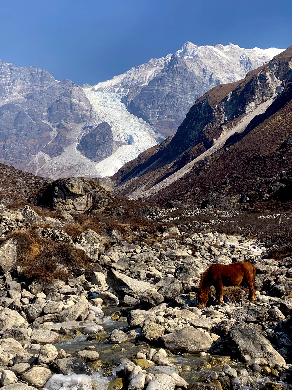 You can spot Langtang Lirung (7234 m) amongst the Langtang Himal. Interestingly, “himal” means “mountain” in Nepali, so the Himalayas loosely translates to the Mountains!
