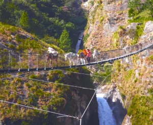 After a restful night’s sleep (we hope!) and a delicious hearty breakfast, you set off again for another day on your Upper Manaslu Circuit Trek. Start by crossing over a river via a suspension bridge, which is strong enough to hold the many mules that carry items deep into the Manaslu region.